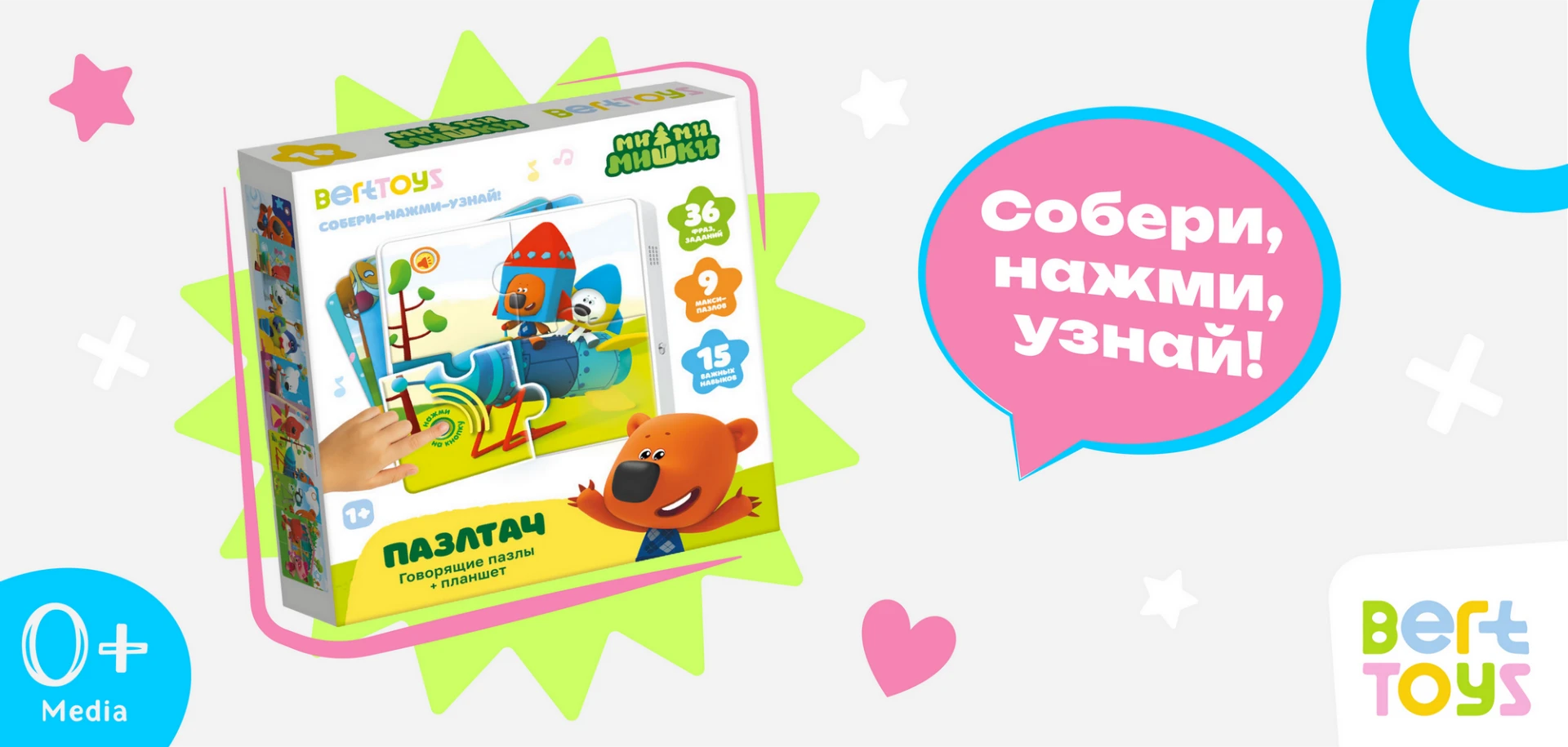 Компания BertToys выпустила интерактивную игру «Пазлтач» с героями мультсериала “Ми-ми-мишки”, которая погружает ребенка в добрый и познавательный мир анимационного проекта.